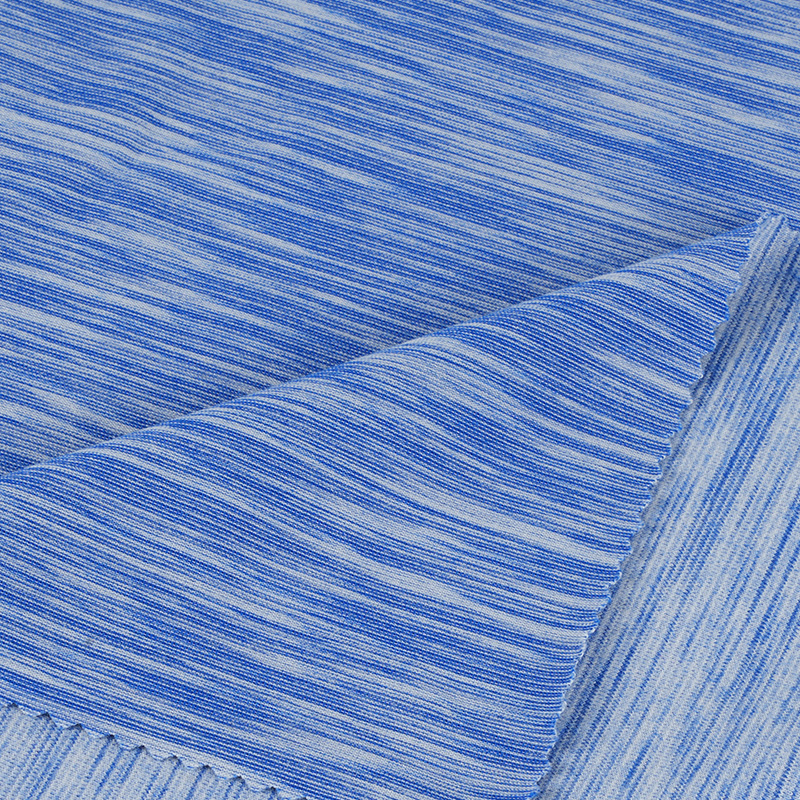Lo strato orizzontale del motivo in pietra di mica dà a Melange Jersey uno stile speciale, che si ottiene usando la tintura del filo cationico.