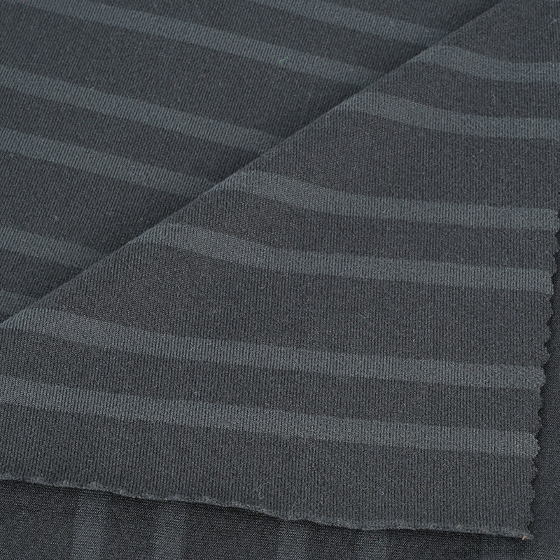 Il tessuto a maglia a maglia 11SP149 ha un buon elastico, il leggermente pescato rende il tessuto più morbido. Lo stile a strisce è alla moda. Questo tessuto è molto adatto alla pelle.